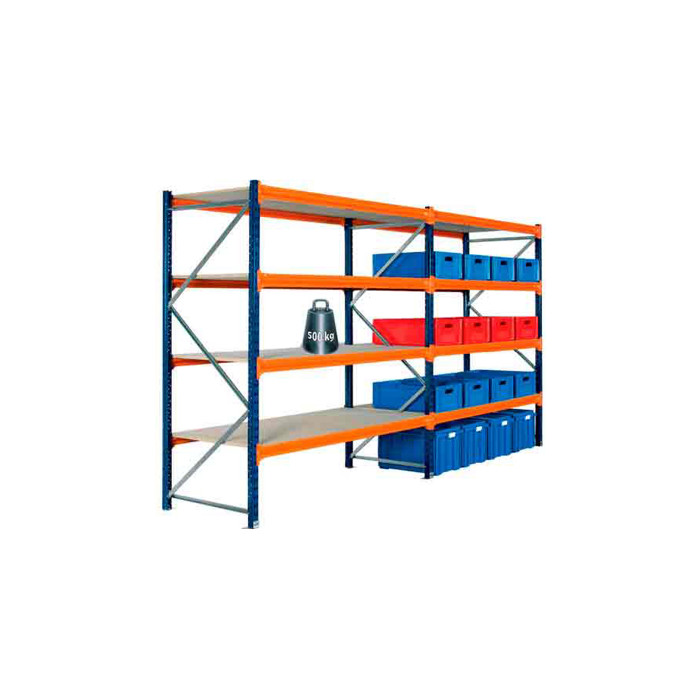 Atlas storreol 2 fag er en robust opbevaringsløsning, der består af tre blå stiger på 300 cm og 16 orange bjælker på 180 cm. På bjælkerne placeres otte spånplader, der er 19 mm tykke. Stigerne leveres samlede, hvilket gør opsætningen nemmere. Reolen er af europæisk kvalitet, og det anbefales at bruge understøtning ved høj belastning for at forhindre, at spånpladerne bøjer. Se varenummer: 3172271018 for mere information.
