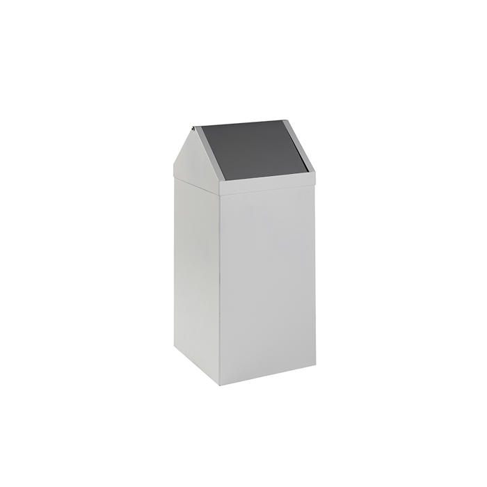 Toppen af beholderen kan nemt tages af, hvilket gør tømningen enkel og hurtig. Den er pulverlakeret med en meget holdbar strukturmaling i grå RAL 7037, som sikrer, at den holder sig pæn i lang tid.