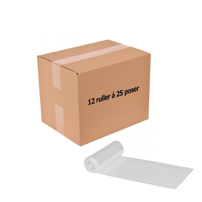Hver pakke indeholder 12 ruller, og hver rulle har 25 poser. Det giver dig i alt 300 poser, så du har nok til en længere periode.