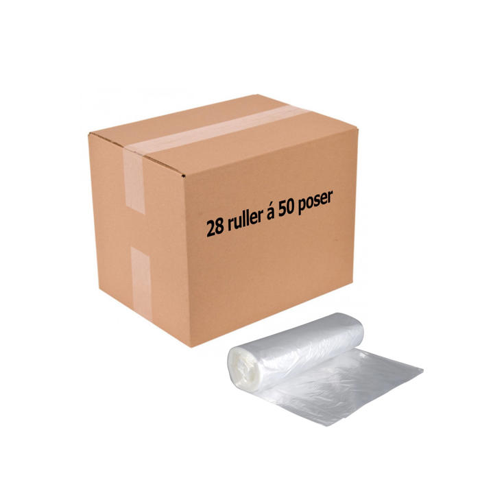 Hver pakke indeholder 28 ruller, og hver rulle har 50 poser. Det giver dig i alt 1400 poser, så du har nok til en længere periode.