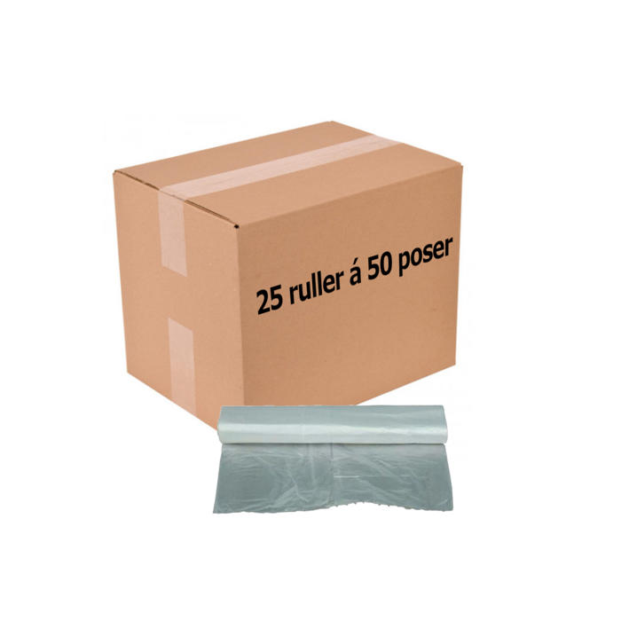 Hver pakke indeholder 25 ruller med 50 poser på hver rulle, hvilket giver dig i alt 1250 poser. Det gør det nemt at have nok poser til rådighed i længere tid.