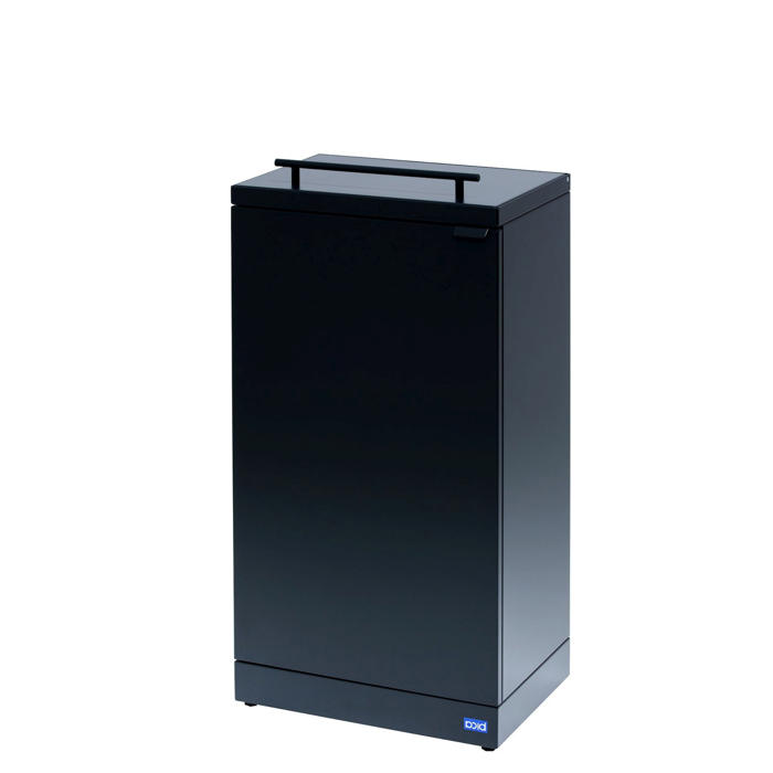 Vores affaldsbeholder til kildesortering er designet med låg og er ideel til madaffald. Den har en frontlåge med soft close og en integreret poseholder. Beholderen er lavet af pulverlakeret stål, har en kapacitet på 95 liter og måler 42,5x30x84,5h cm. En praktisk løsning til både kontoret og kantinen.