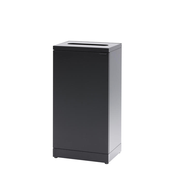 Her er en affaldsbeholder til kildesortering, der er udstyret med papirindkast. Låget har en soft close-funktion, og der er en integreret poseholder. Beholderen er lavet af pulverlakeret stål, har en kapacitet på 95 liter og måler 42,5x30x84,5h cm. En praktisk løsning til både kontoret og kantinen.