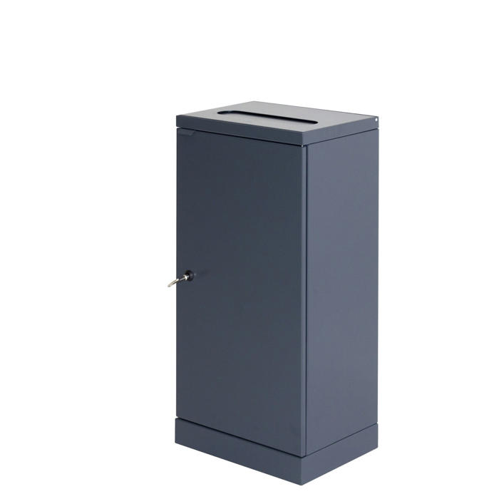 Vores affaldsbeholder til kildesortering er designet med indkast til f.eks. aviser og reklamer. Låget har en soft close-funktion, og der er en integreret poseholder. Beholderen er lavet af pulverlakeret stål, har en kapacitet på 95 liter og måler 42,5x30x84,5h cm. En praktisk løsning til både kontoret og kantinen.