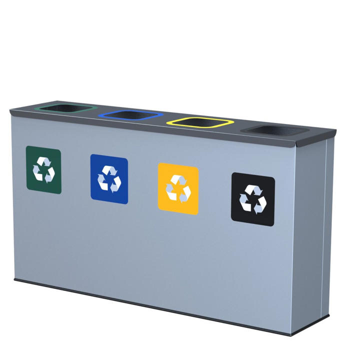 Denne affaldsstation er designet med fire kvadratiske indkast og leveres med fire inderspande, hver med en kapacitet på 30 liter. Låget i toppen gør det nemt at tømme sækkene.