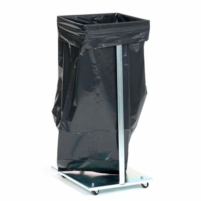 Denne affaldsvogn er udstyret med 4 drejelige hjul, hvilket gør den nem at manøvrere rundt. Den har en robust base, der sikrer stabilitet, og er designet til at kunne rumme en 125 liters pose.