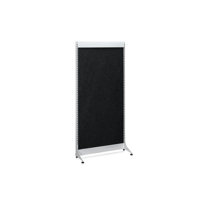 Afskærmningsvæggen er fremstillet af lydabsorberende polyesterfibre, hvoraf 50% er genanvendt PET-materiale, og overfladen er beklædt med slidstærkt nålefilt. Materialet er testet for temperaturbestandighed fra -30°C til +80°C og opfylder brandklassifikationen B S1 D0. Det betyder, at det kan brænde, men uden at afgive skadelige røg eller dannelse af brændende dråber, hvilket gør det både sikkert og miljøvenligt. Desuden er materialet fuldt genanvendeligt, så det kan indgå i cirkulære affaldssystemer.