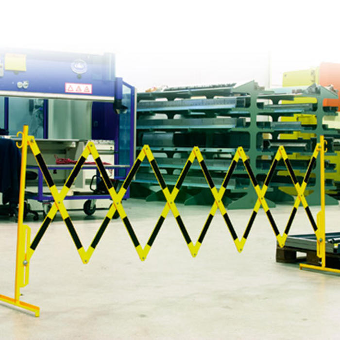 Dette foldegitter er ideelt til afspærring og kan tilpasses forskellige behov. Det er en robust model, der kan strække sig op til 4 meter i bredden. Gitteret er lavet af fladstål og er designet til at være pladsbesparende, når det opbevares.