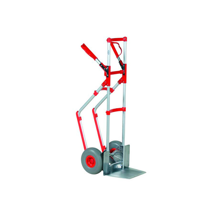 Denne aluminiums sækkevogn er udstyret med punkterfrie hjul, hvilket gør den ekstra holdbar og pålidelig. Den er designet til at klare tunge opgaver med en maksimal kapacitet på 250 kg. Sækkevognen har også glideskinner, der gør det nemt at transportere varer op og ned ad trapper. Lastepladen kan foldes sammen, når den ikke er i brug, hvilket gør opbevaring lettere.