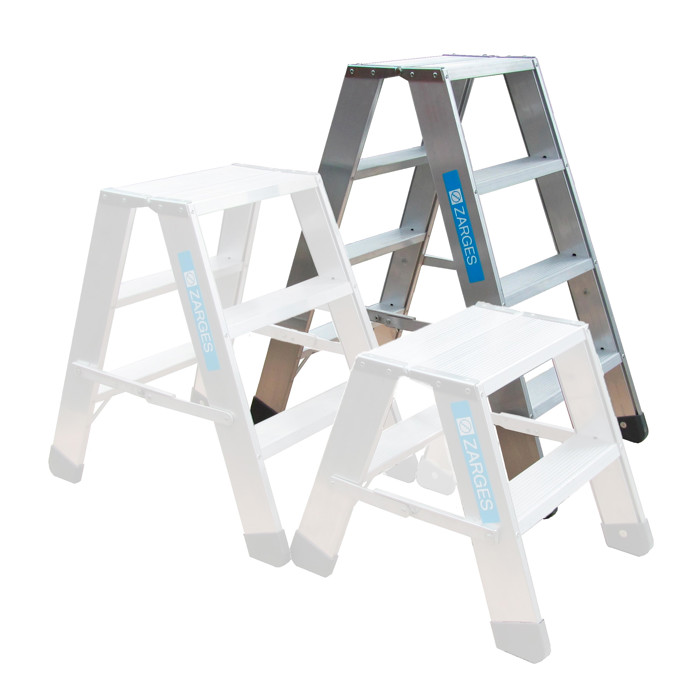 Denne arbejdsbuk er ideel til både butik og lager. Den er lavet af aluminium og har trin på begge sider, som gør det nemt at bruge den fra begge retninger.