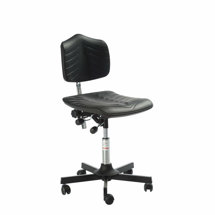 Holdbar arbejdsstol designet til krævende miljøer. Udstyret med Euromatic mekanisme, der giver trinløs justering af både sæde- og ryglænsvinkel. Sæde og ryg er fremstillet af super-blødt, slidstærkt og let rengøringsvenligt sort polyurethan-skum. Stolen har en solid fodkryds i sort stål og letløbende hjul. Justerbar siddehøjde fra 64 til 83 cm.