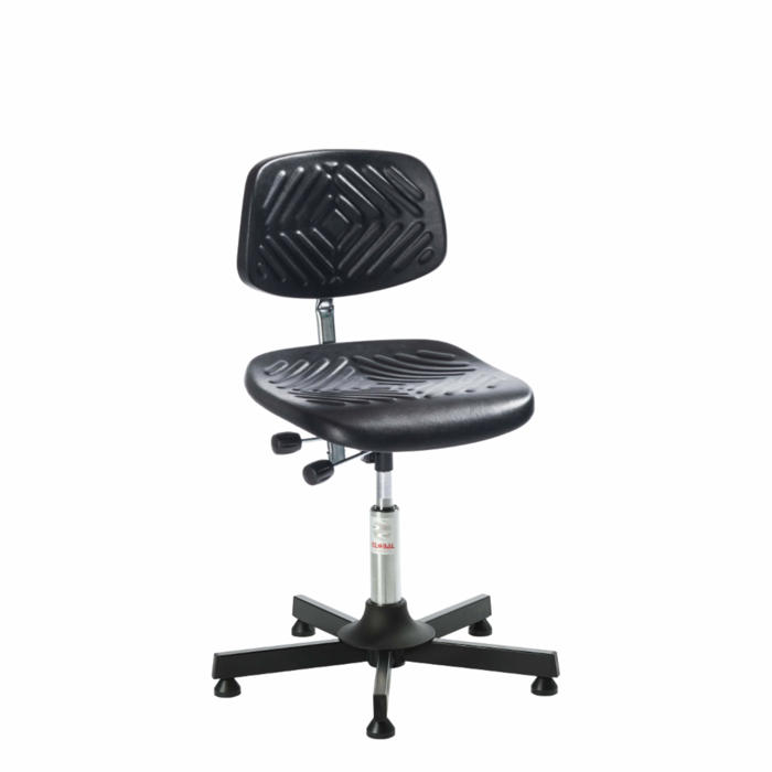 Holdbar arbejdsstol designet til krævende miljøer. Udstyret med Euromatic mekanisme, der giver mulighed for trinløs justering af både sæde- og ryglænsvinkel. Sæde og ryg er fremstillet af slidstærkt og let rengørligt sort polyurethan-skum. Stolen har et fodkryds i sort stål og er udstyret med glidesko. Siddehøjden kan justeres fra 52 til 65 cm.