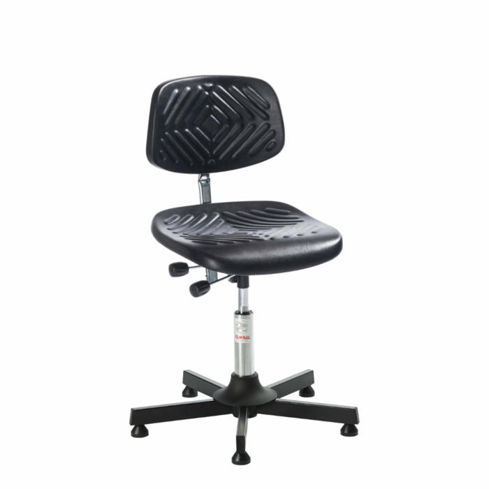 Holdbar arbejdsstol designet til krævende miljøer. Udstyret med Euromatic mekanisme, der giver trinløs justering af både sæde- og ryglænsvinkel. Sæde og ryg er fremstillet af slidstærkt og let rengørligt sort polyurethan-skum. Stolen har et fodkryds i sort stål og er udstyret med glidesko. Justerbar siddehøjde fra 61 til 80 cm.