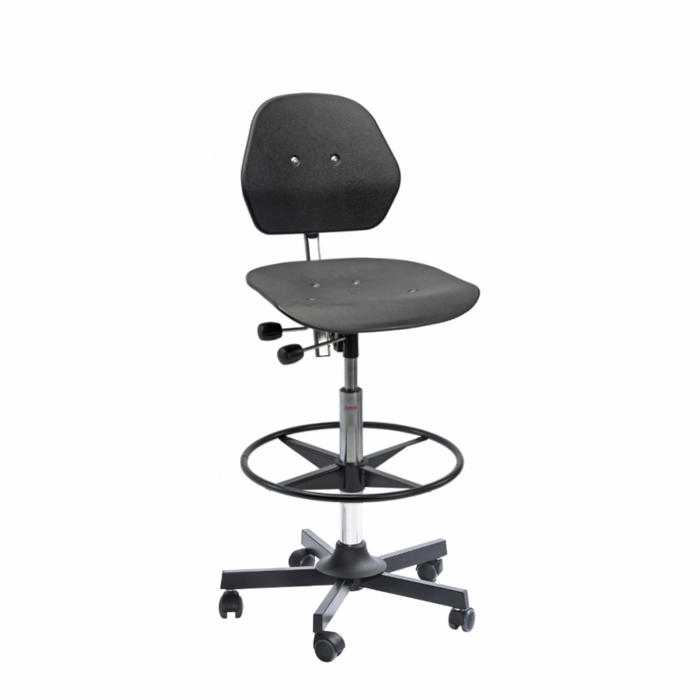 Holdbar arbejdsstol designet til krævende miljøer. Udstyret med Euromatic mekanisme, der giver mulighed for trinløs justering af både sæde- og ryglænsvinkel. Sæde og ryg er fremstillet af slidstærk, slagfast og let rengørlig sort plast. Fodkryds og fodring er lavet af sort stål. Stolen har hjul med belastningsbremse. Justerbar siddehøjde fra 71 til 97 cm.