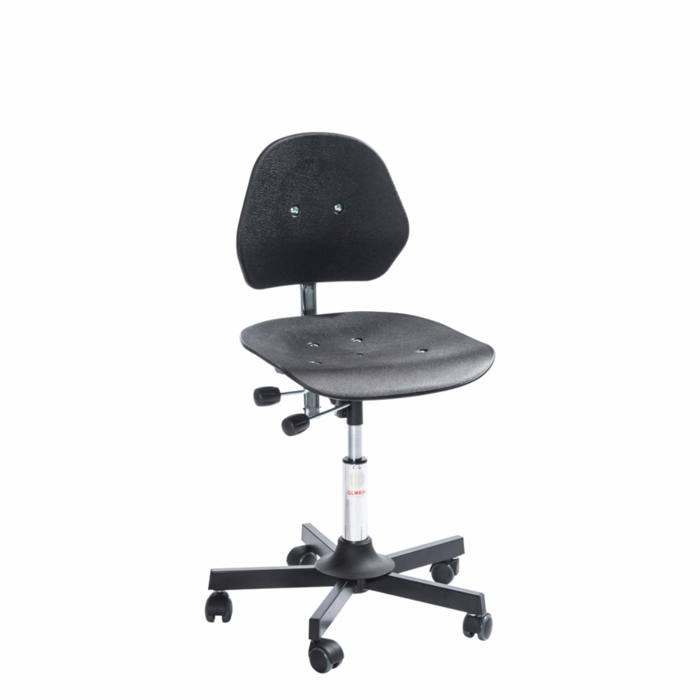 Holdbar arbejdsstol designet til krævende miljøer. Udstyret med Euromatic mekanisme, der giver mulighed for trinløs justering af både sæde- og ryglænsvinkel. Sæde og ryglæn er fremstillet af slidstærkt, slagfast og let rengørligt sort plast. Stolen har en solid fodkryds i sort stål og er monteret med letløbende hjul. Justerbar siddehøjde fra 52 til 65 cm.