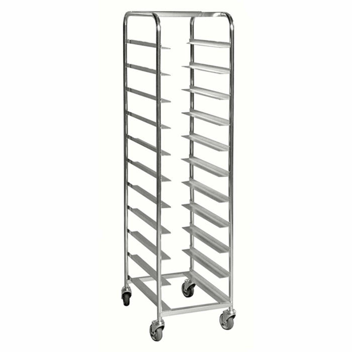 Denne bakkevogn er lavet med 25 mm elforzinket rør og er udstyret med fire svingbare hjul, hvilket gør den nem at manøvrere rundt. Den kan bære op til 150 kg og har plads til 11 Eurokasser. Afstanden mellem rækkerne er 15 cm, hvilket gør den ideel til plastkasser i størrelsen 60x40 cm med en maksimal højde på 15 cm.