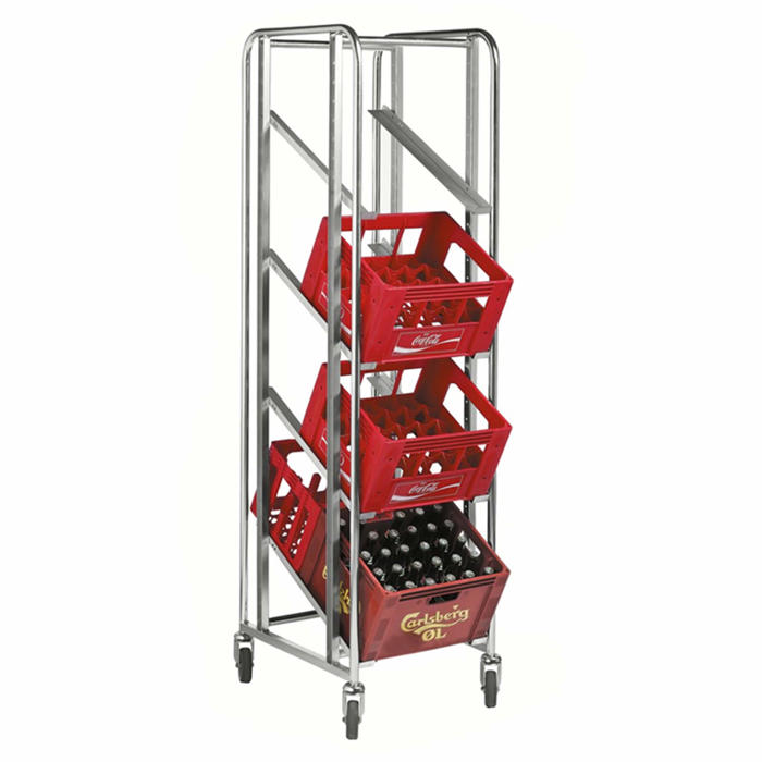 Denne bakkevogn er lavet med 25 mm elforzinket rør og har fire drejelige hjul på 10 cm. Den kan bære op til 150 kg og er ideel til at transportere 2x4 kasser øl eller sodavand.