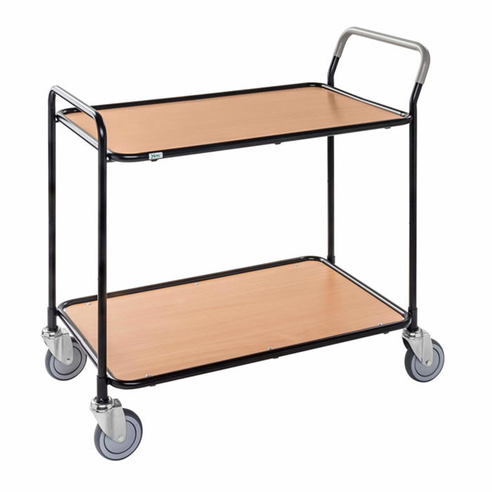 Hyldekanterne i sort stål har afrundede kanter, hvilket giver et blødere udseende. Denne vogn er ideel til brug på kontorer, restauranter og lignende steder. Den er robust og kan klare en høj belastning.