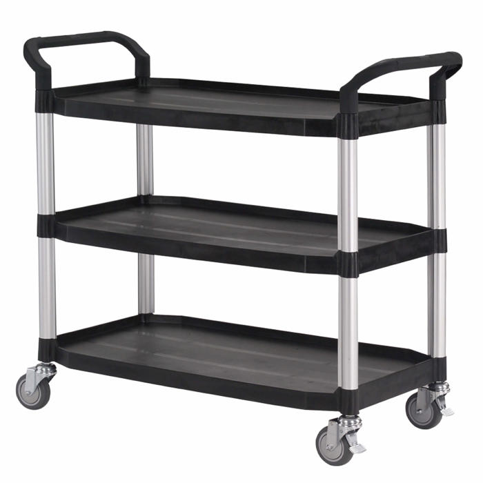 Dette rullebord er lavet af superplast og har tre hylder i sort. Søjlerne er fremstillet af aluminium, hvilket gør det robust og holdbart. Det kan bære op til 250 kg og er udstyret med fire drejelige hjul, hvoraf to har bremser. Afstanden mellem hylderne er 29,3 cm. Rullebordet har håndtag i begge ender og leveres usamlet.