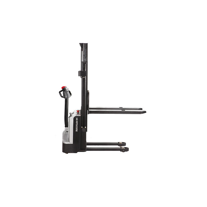 Vores kraftige elektriske dobbeltmastede pallestabler har en løftekapacitet på 1200 kg. Den er designet som en gå-model med elektrisk løft og kørsel. Den kan stable op til 270 cm i højden og har en gaffellængde på 115 cm. Pallestableren er udstyret med PU-hjul og drives af 2x12V, 105Ah batterier.