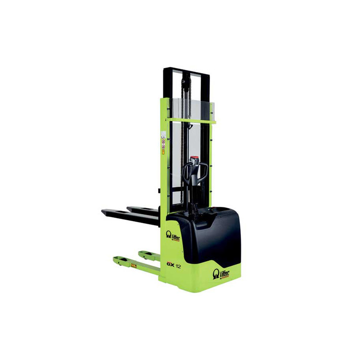 Lifter GX12/29 er en elektrisk stabler, der kommer med et indbygget batteri og lader. Den har en løftekapacitet på 1200 kg og tilbyder både elektrisk løft og kørsel. Med en løftehøjde på 290 cm og en gaffellængde på 115 cm, er denne stabler ideel til forskellige opgaver.