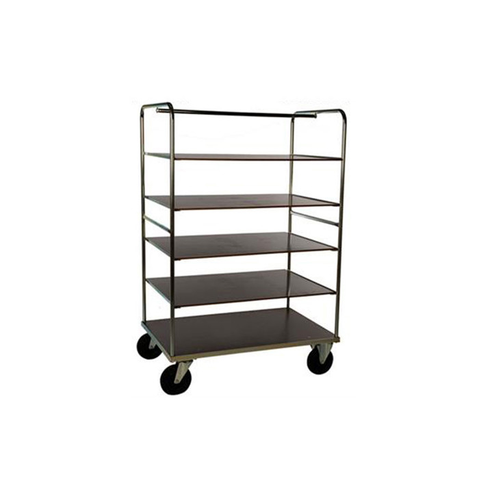 Etagevognen kommer med to faste og to drejelige hjul, alle lavet af massiv gummi. Dette gør det nemt at manøvrere vognen, selv når den er fuldt lastet.