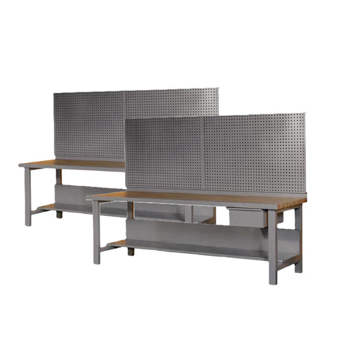 Hver mesterbænk er udstyret med en værktøjstavle på 90 centimeter i højden, som gør det nemt at organisere dit værktøj. Værktøjsophæng sikrer, at dine mest brugte redskaber altid er inden for rækkevidde, mens en skuffe på skinner giver ekstra opbevaringsplads til smådele og værktøj.