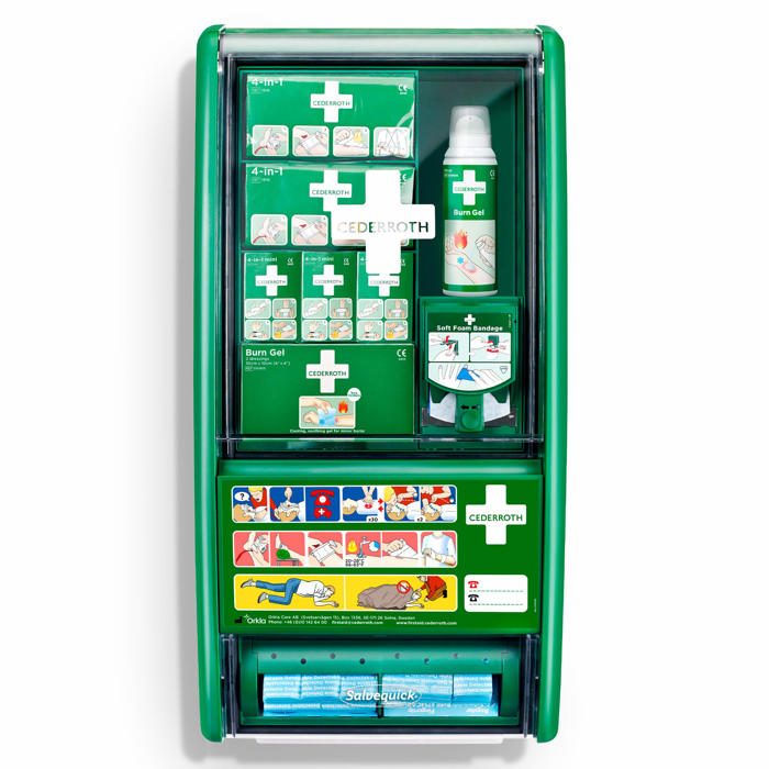 Cederroth Førstehjælpsstation er designet specielt til miljøer med høj risiko for forbrændinger og snitsår, som fx køkkener, el-arbejdspladser og svejseværksteder. Med det rette udstyr på plads kan du hurtigt og effektivt lindre smerter og behandle skader, når uheldet er ude.