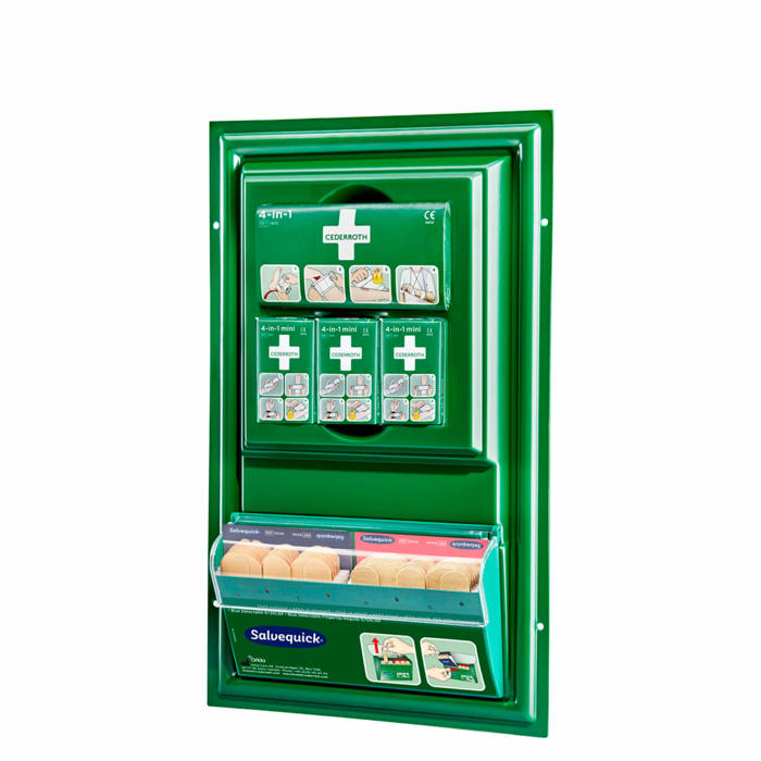 Cederroth førstehjælpstavler er uundværlige både på arbejdspladsen og derhjemme. Med en Salvequick Plaster Dispenser, der inkluderer 40 tekstilplastre og 45 plastplastre, samt en Cederroth 4-i-1 Bloodstopper og 3 Cederroth 4-i-1 Mini Bloodstoppers, er du godt rustet til at håndtere skader og blødninger. Denne førstehjælpstavle samler alt, hvad du har brug for, i en praktisk og let tilgængelig enhed.