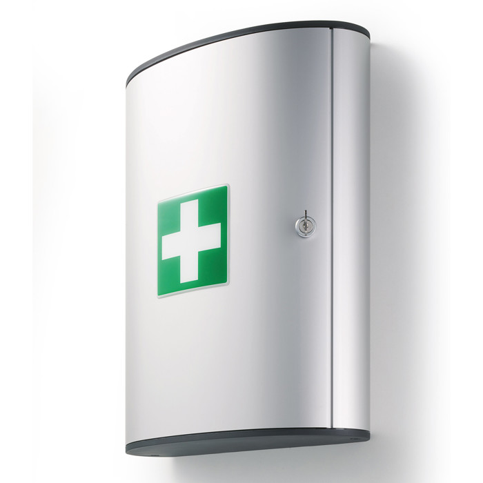 Med dette låsbare førstehjælpsskab kan du holde dine førstehjælpsartikler sikre og organiserede. De tre svingbare rum giver dig nem adgang til alt, hvad du har brug for i en nødsituation. Skabet er lavet af børstet aluminium, hvilket giver det et moderne udseende.