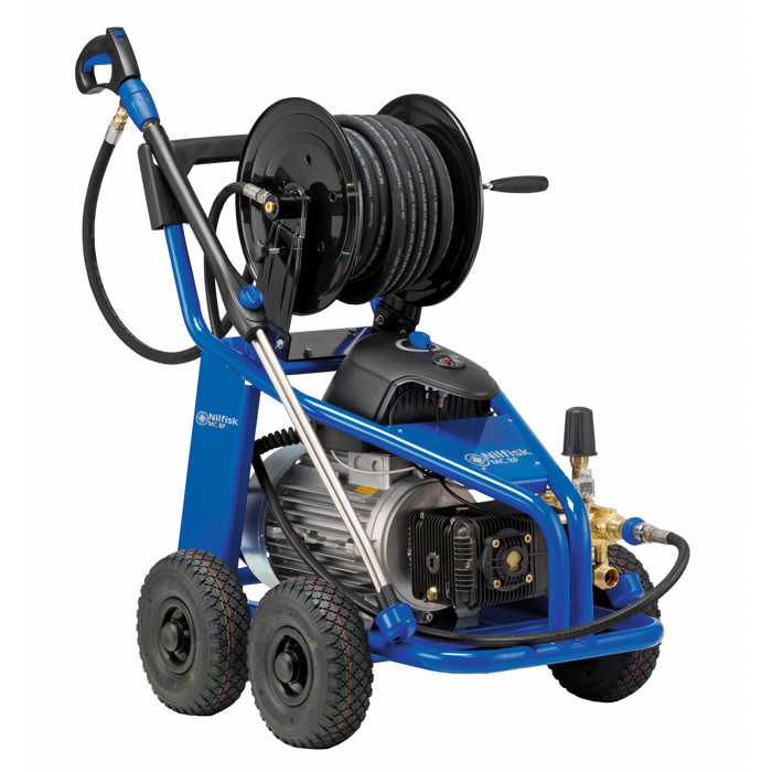MC 8P fås med to forskellige ydelser og kan vælges med enten pulverlakeret eller rustfri stålramme. Med et tryk på 180 bar og en vandmængde på op til 2500 liter i timen, afhængigt af modellen, kan selv det mest genstridige snavs fjernes hurtigt og effektivt.