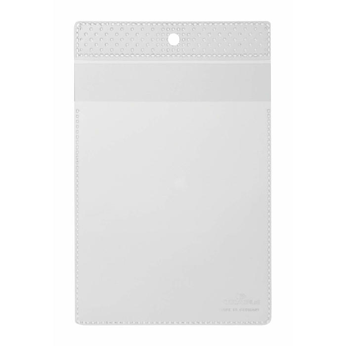 - Transparent lomme med foldeflap og svejset ophængshul i midten