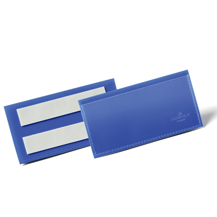 Denne lagerlomme har en blå bagside og er udstyret med selvklæbende strips, hvilket gør den nem at fastgøre på forskellige overflader som metal, karton og plast. Den er lavet af holdbar polypropylen, som sikrer, at den er rivefast og velegnet til brug med scannere. Indholdet kan hurtigt udskiftes, og du kan finde gratis skabeloner til etiketter på www.duraprint.eu.