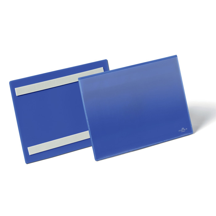 En lagerlomme med blå bagside og selvklæbende strips, der har et gennemsigtigt vindue lavet af holdbar polypropylen. Denne lagerlomme kan bruges på forskellige overflader som metal, karton og plast. Den er rivefast og velegnet til brug med scannere, hvilket gør den praktisk i mange situationer. Indholdet kan hurtigt udskiftes, og du kan finde gratis skabeloner til etiketter på www.duraprint.eu.