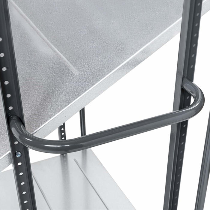 Dette håndtag er designet til fleksible hyldevogne og kommer i en mørkegrå farve. Det kan nemt monteres i den ønskede højde, så du kan tilpasse det efter dine behov.