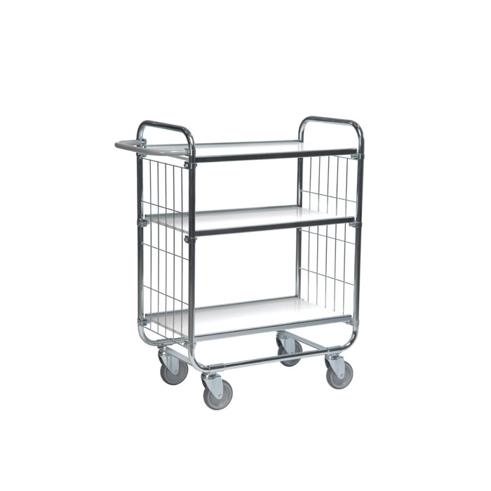 Denne hyldevogn er ideel til dig, der har brug for en fleksibel løsning med tre hylder. Den måler 95 cm i længden, 47 cm i bredden og 112 cm i højden. Vognen har elforzinkede gavle og hyldekanter, mens hyldepladerne er lavet af 12 mm laminat og kan justeres i højden. Håndtaget er grålakeret og kan også justeres i højden.