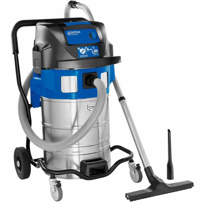 De to motorer i industriel kvalitet sikrer høj ydeevne og pålidelighed til det daglige, grove arbejde. Det vaskbare PET nano-fiber filterelement holder sugeevnen konstant høj og reducerer vedligeholdelsesomkostningerne. ATTIX 961-01 leveres med Ø38 mm standardudstyr og er klar til brug med det samme.