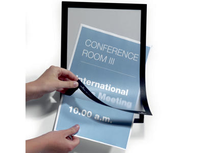 Inforammerne fra Durable er nemme at sætte op, og kan sættes på mange forskellige overflader. De fås både med en magnestisk bagside eller en selvklæbende bagside, der kan sættes på alt lige fra glatte overflader til følsomme overflader. De magnetiske inforammer er perfekte til metaloverflader. Inforammerne fås i mange forskellige størrelser og farver, og kan derfor tilpasses individuelle behov.