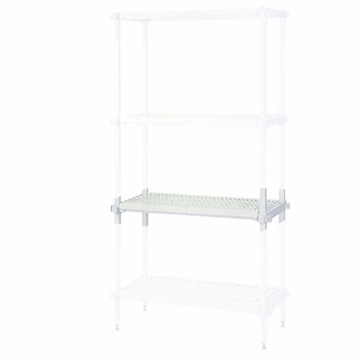 Dette hyldesystem består af to traverser, hyldebærere og hyldeplader lavet af polypropylene. Hyldepladerne kan nemt afmonteres og vaskes i opvaskemaskinen. De er også perforerede, hvilket gør dem praktiske og lette at rengøre.