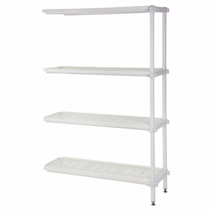 Hyldepladerne er lavet af polypropylene og kan nemt tages af og vaskes i opvaskemaskinen. De er perforerede for bedre ventilation. Søjlerne er belagt med en kraftig, ugiftig epoxy, der giver 10 års garanti mod rust. Reolen kan udvides med flere hylder, ekstra fag og vinkelfag, hvilket gør den meget fleksibel. Den europæiske kvalitet sikrer, at Eco Color er en stabil og stærk reol, der er nem at bruge. Da der ikke er nogen ryg- eller gavlkryds, kan reolen til kølerum bruges fra alle sider.