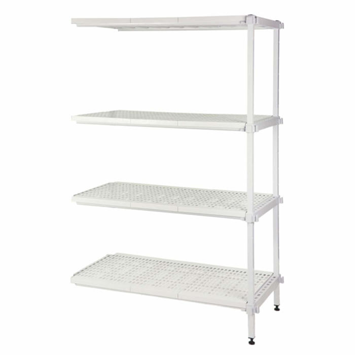 Hyldepladerne er lavet af polypropylene og kan nemt tages af og vaskes i opvaskemaskinen. De er perforerede for bedre ventilation. Søjlerne er belagt med en kraftig, ugiftig epoxy, der giver 10 års garanti mod rust. Reolen kan udvides med flere hylder, ekstra fag og vinkelfag, hvilket gør den meget fleksibel. Den europæiske kvalitet sikrer, at Eco Color er en stabil og stærk reol, der er nem at bruge. Da der ikke er nogen ryg- eller gavlkryds, kan reolen til kølerum bruges fra alle sider.
