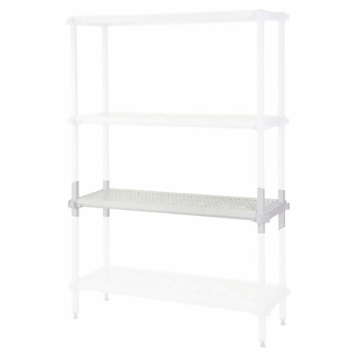 Dette hyldesystem består af to traverser, hyldebærere og hyldeplader lavet af polypropylene. Hyldepladerne kan nemt afmonteres og vaskes i opvaskemaskinen. De er også perforerede, hvilket gør dem praktiske og lette at rengøre.