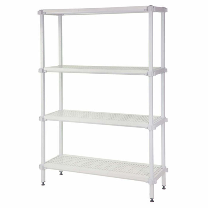 Hyldepladerne er lavet af polypropylene og kan nemt afmonteres og vaskes i opvaskemaskinen. De perforerede hyldeplader sikrer god ventilation. Søjlerne er belagt med en kraftig, ugiftig epoxy, som giver en 10-års garanti mod rust. Reolen kan udbygges med flere hylder, ekstra fag og vinkelfag, hvilket gør den meget fleksibel. Den europæiske kvalitet sikrer, at Eco Color er en stabil og stærk reol, der er nem at bruge. Da der ikke er nogen ryg- eller gavlkryds, kan kølerumsreolen anvendes fra alle sider.