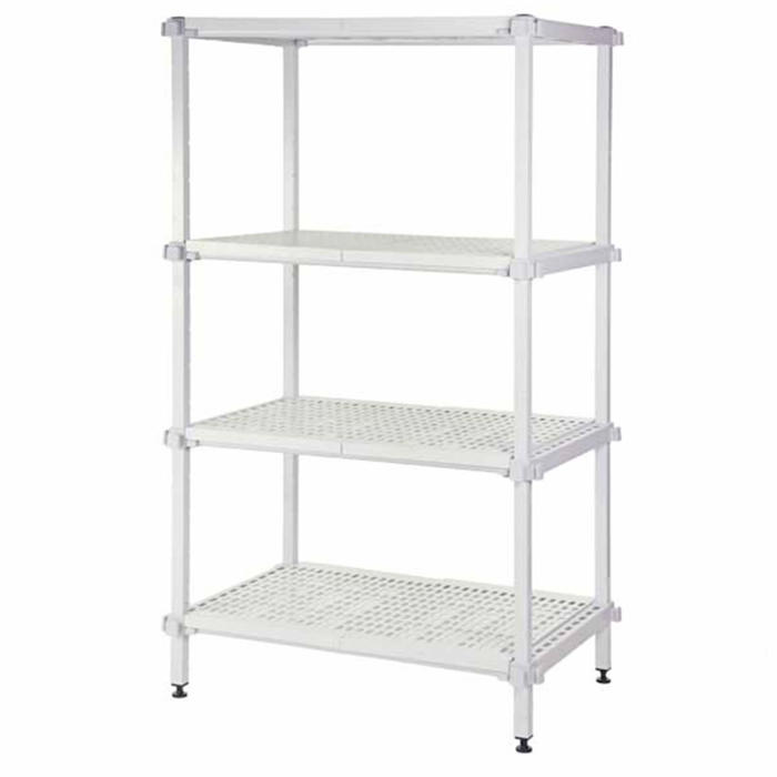 Hyldepladerne er lavet af polypropylene og kan nemt afmonteres og vaskes i opvaskemaskinen. De perforerede hyldeplader sikrer god ventilation. Søjlerne er belagt med en kraftig, ugiftig epoxy, som giver en 10-års garanti mod rust. Reolen kan udbygges med flere hylder, ekstra fag og vinkelfag, hvilket gør den meget fleksibel. Den europæiske kvalitet sikrer, at Eco Color er en stabil og stærk reol, der er nem at bruge. Da der ikke er nogen ryg- eller gavlkryds, kan kølerumsreolen anvendes fra alle sider.