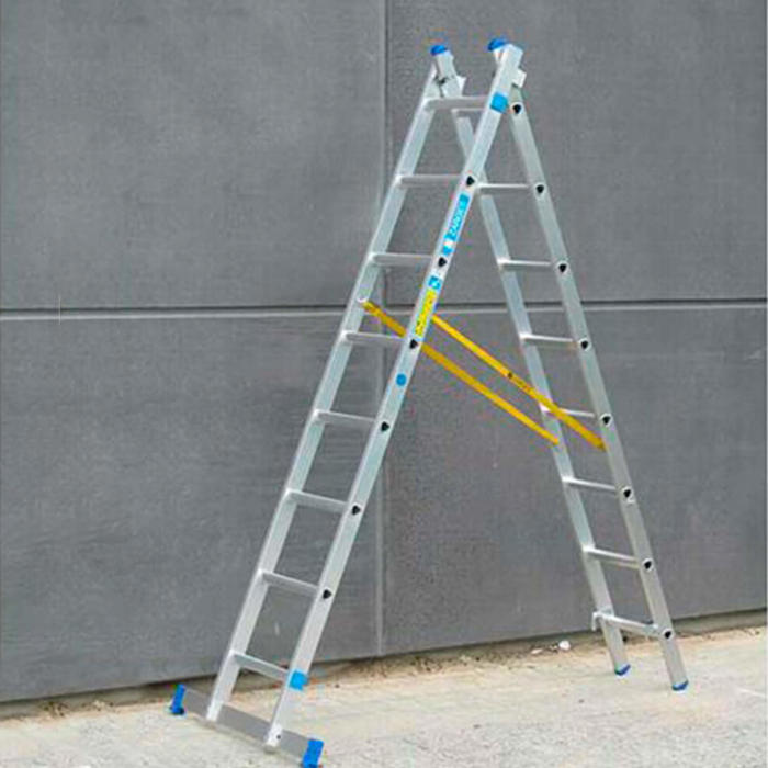 Trinene på denne skydestige er specielt designet med ergonomi i tankerne. Dette betyder, at du kan arbejde komfortabelt og sikkert, selv når du står på stigen i længere tid. Den robuste konstruktion i aluminium sikrer, at stigen er både let og holdbar.