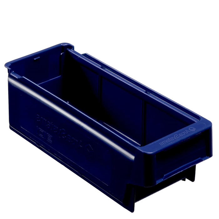 ArcaSystems lagerskuffe i blå er designet med gribebakker bagpå, så skufferne nemt kan hænge i hylderne. Den er lavet af slagfast plast, hvilket gør den holdbar og robust. Denne model passer perfekt med 8 lagerskuffer på en 100 cm hylde (model 9101).