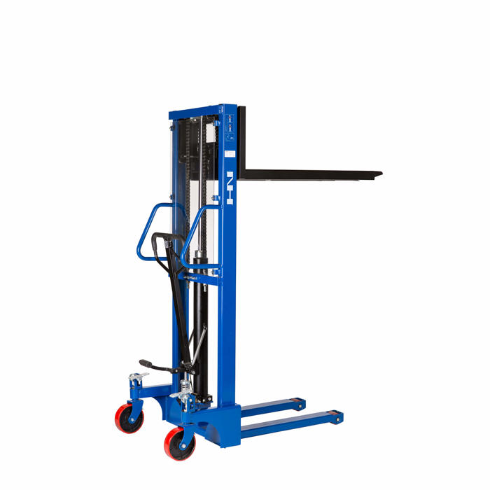 Vores manuelle stabler kan håndtere op til 1000 kg og er designet til både manuel løft og kørsel. Den har en løftehøjde, der spænder fra 8,5 cm til 160 cm, og er udstyret med en quick lift-funktion. Stablerens egenvægt er 220 kg.