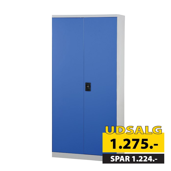 Arkivskab med 4 justerbare hylder. Leveres usamlet. Fremstillet i stål og udstyret med cylinderlås. Hver hylde kan bære op til 50 kg, jævnt fordelt. Den samlede maksimale belastning er 250 kg. Dimensioner: 39x85x180h cm.