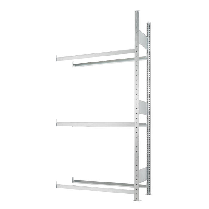 Meta dækreol er galvaniseret og kommer med tre hyldebjælker. Hver hyldepar kan bære op til 150 kg, hvilket gør den robust og pålidelig til opbevaring.