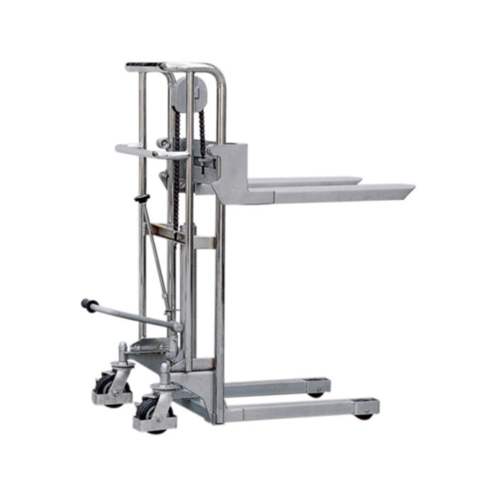 Ministableren med fodpumpe er en praktisk løsning til håndtering af halvpaller og fungerer også som et mobilt løftebord. Den er designet med en hydraulisk stabler og en mobil løfteplatform, der har faste gafler og en aftagelig platform, som gør den meget fleksibel i brug.